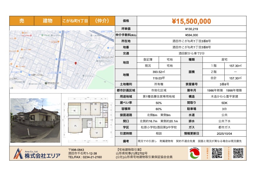 | 周辺環境・学区 | 松原小学校/酒田第3中学校 |
