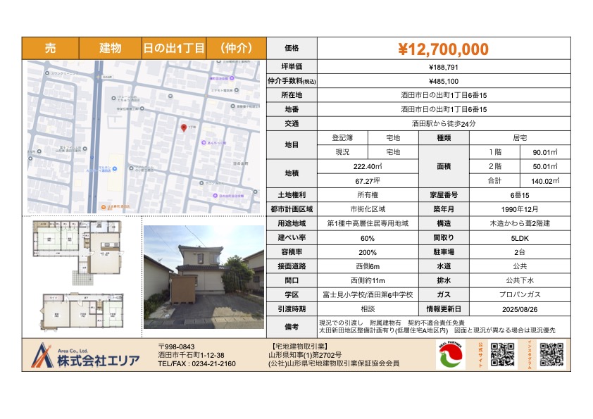 | 所在地 | 酒田市日の出町1丁目6番15 |