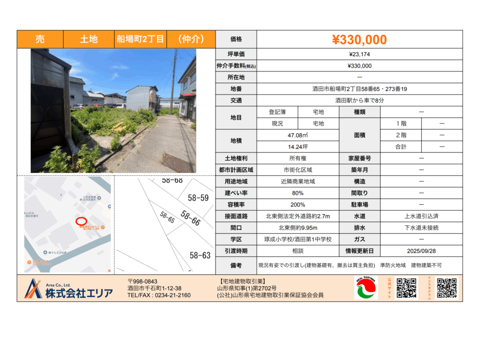 | 周辺環境・学区 | 琢成小学校/酒田第1中学校 |