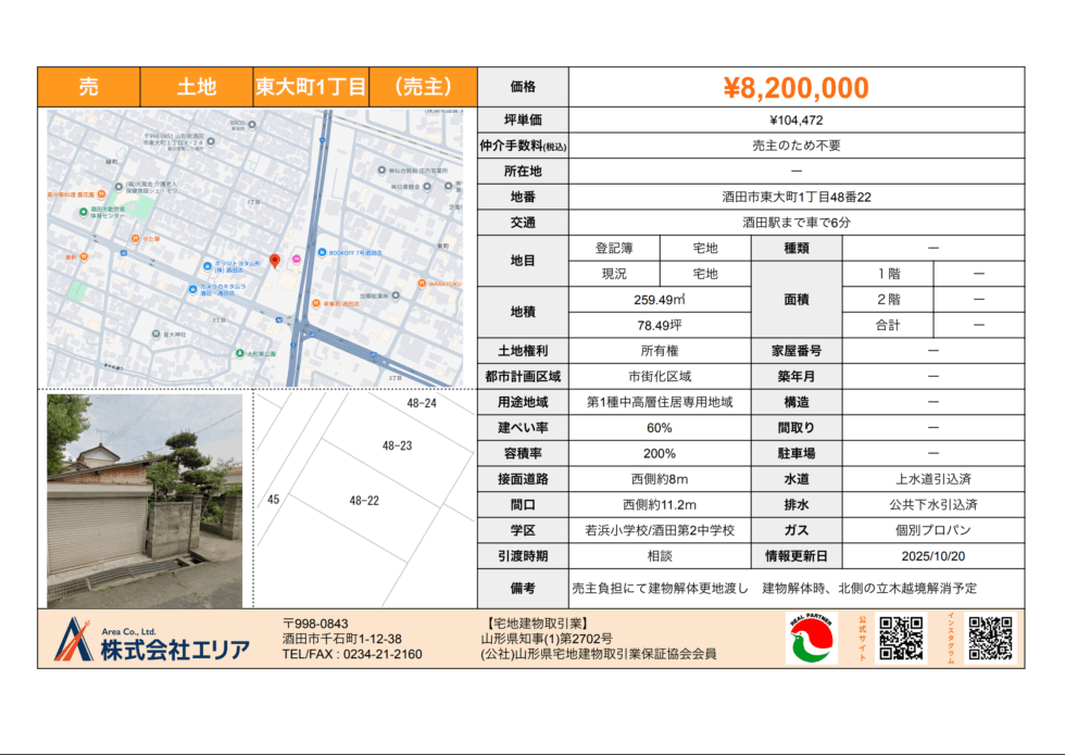 売土地 酒田市東大町1丁目