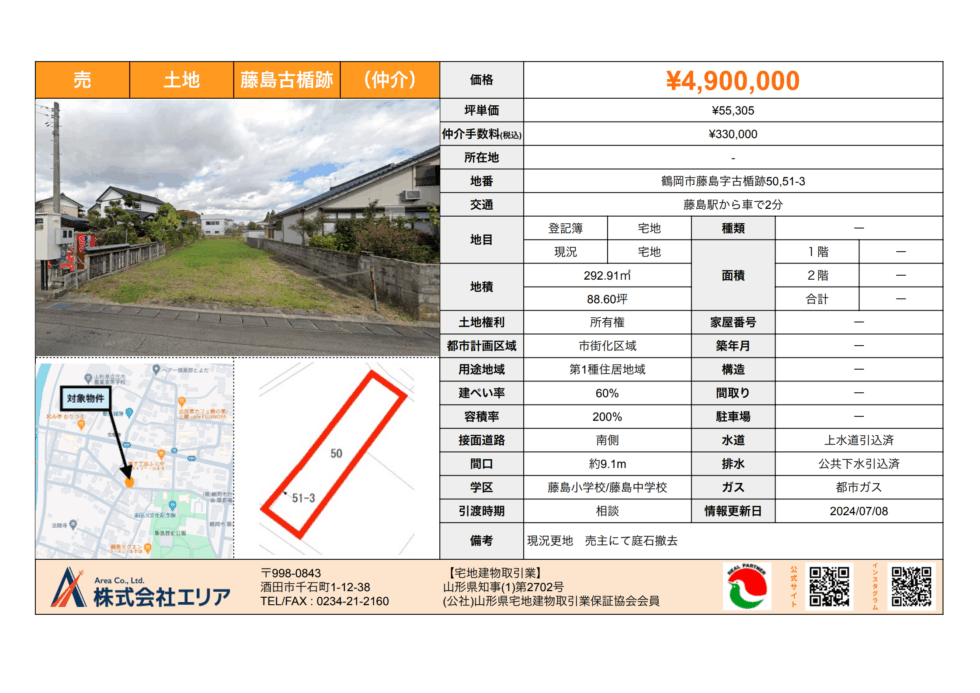 | 備考 | 現況更地 売主にて庭石撤去 |