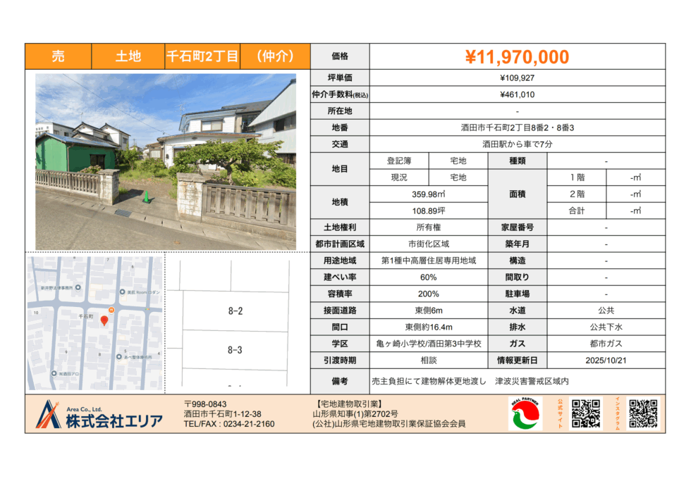 | 周辺環境・学区 | 亀ヶ崎小学校/酒田第3中学校 |